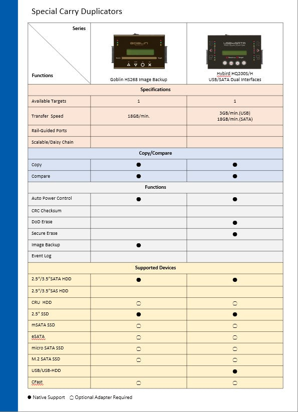 Notre modèle HQ200S offre une vitesse de copie allant jusqu'à 9 Go par minute et la version haute vitesse HQ200H peut copier vos disques durs ou SSD avec une vitesse allant jusqu'à 18 Go par minute.