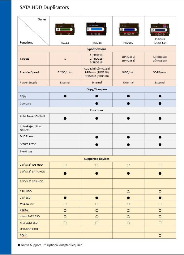 As we do offer different models in the PRO hard drive cloner series, you can check out the different models Design.